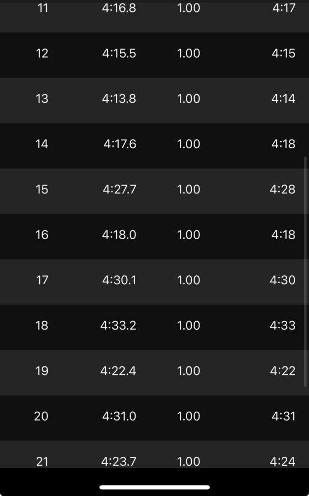 今の実力では1kmあたり4:15は